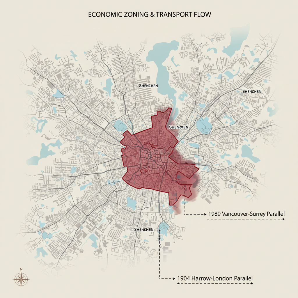![flat color political map, clean cartographic style, muted earth tones, no 3D effects, geographic clarity, professional map illustration, minimal ornamentation, clear typography, restrained color coding, a flat 2D economic map showing Hong Kong's urban core sharply bounded in deep red, with thin gray railway lines radiating northward into Shenzhen, where identical zoning patterns begin to mirror Hong Kong's; the border between the two cities subtly blurred, as if smudged by motion, with annotated lines marking 1904 Harrow-London and 1989 Vancouver-Surrey parallels [Nano Banana] flat color political map, clean cartographic style, muted earth tones, no 3D effects, geographic clarity, professional map illustration, minimal ornamentation, clear typography, restrained color coding, a flat 2D economic map showing Hong Kong's urban core sharply bounded in deep red, with thin gray railway lines radiating northward into Shenzhen, where identical zoning patterns begin to mirror Hong Kong's; the border between the two cities subtly blurred, as if smudged by motion, with annotated lines marking 1904 Harrow-London and 1989 Vancouver-Surrey parallels [Nano Banana]](https://081x4rbriqin1aej.public.blob.vercel-storage.com/viral-images/1e6e6599-ffed-4f48-b23f-457d4dbc775e_viral_1_square.png)