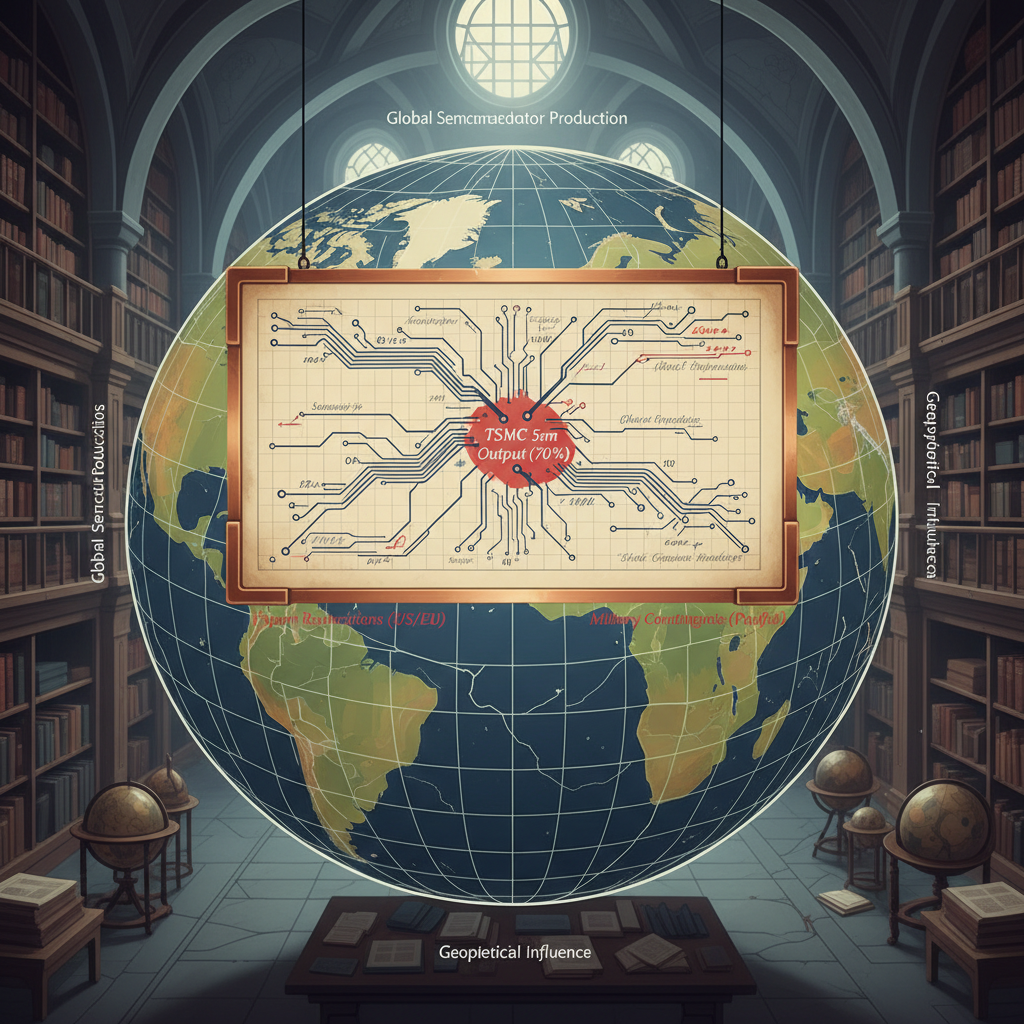![clean data visualization, flat 2D chart, muted academic palette, no 3D effects, evidence-based presentation, professional infographic, minimal decoration, clear axis labels, scholarly aesthetic, a large, illuminated ledger chart suspended over a cracked globe grid, ink lines forming semiconductor pathways that converge on a single island node labeled 'TSMC 5nm Output (70%)', fine calligraphy with red marginal annotations showing export restrictions and military contingencies, parchment-like vellum texture with burnished copper ledger borders, top-down flat lighting casting sharp, clean shadows, atmosphere of quiet urgency in a vaulted archival chamber [Nano Banana] clean data visualization, flat 2D chart, muted academic palette, no 3D effects, evidence-based presentation, professional infographic, minimal decoration, clear axis labels, scholarly aesthetic, a large, illuminated ledger chart suspended over a cracked globe grid, ink lines forming semiconductor pathways that converge on a single island node labeled 'TSMC 5nm Output (70%)', fine calligraphy with red marginal annotations showing export restrictions and military contingencies, parchment-like vellum texture with burnished copper ledger borders, top-down flat lighting casting sharp, clean shadows, atmosphere of quiet urgency in a vaulted archival chamber [Nano Banana]](https://081x4rbriqin1aej.public.blob.vercel-storage.com/viral-images/60eaf613-5f1b-4689-877e-ad3fdab704ed_viral_4_square.png)