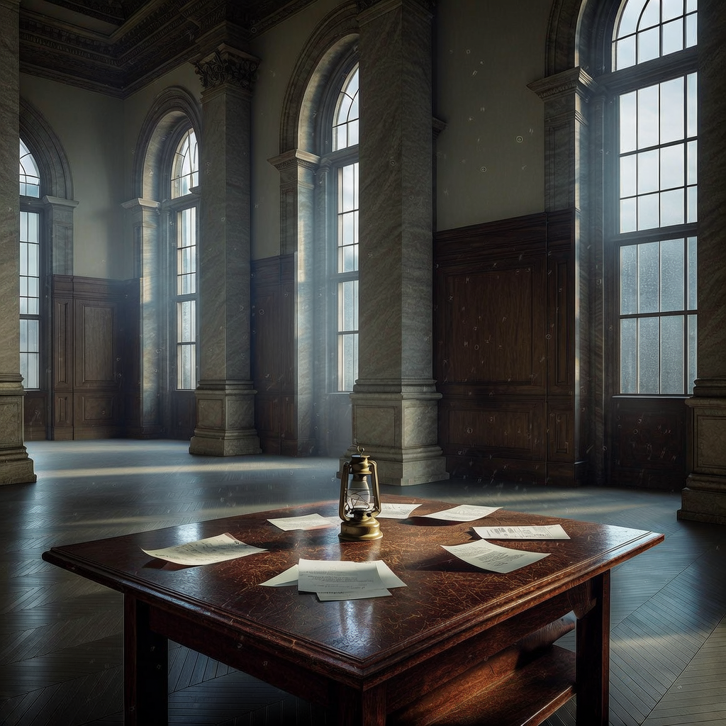 ![empty formal interior, natural lighting through tall windows, wood paneling, institutional architecture, sense of history and permanence, marble columns, high ceilings, formal furniture, muted palette, An unlit brass lantern resting atop a scarred mahogany table, cold morning light slicing through floor-to-ceiling arched windows of a cavernous, empty boardroom, dust motes suspended in the silence, scattered proxy papers fanned across the surface like abandoned pleas, the air thick with stillness and the scent of old wood and disuse [Bria Fibo] empty formal interior, natural lighting through tall windows, wood paneling, institutional architecture, sense of history and permanence, marble columns, high ceilings, formal furniture, muted palette, An unlit brass lantern resting atop a scarred mahogany table, cold morning light slicing through floor-to-ceiling arched windows of a cavernous, empty boardroom, dust motes suspended in the silence, scattered proxy papers fanned across the surface like abandoned pleas, the air thick with stillness and the scent of old wood and disuse [Bria Fibo]](https://081x4rbriqin1aej.public.blob.vercel-storage.com/viral-images/6774d6b4-622b-421b-b2e8-a1b8687e34e1_viral_2_square.png)